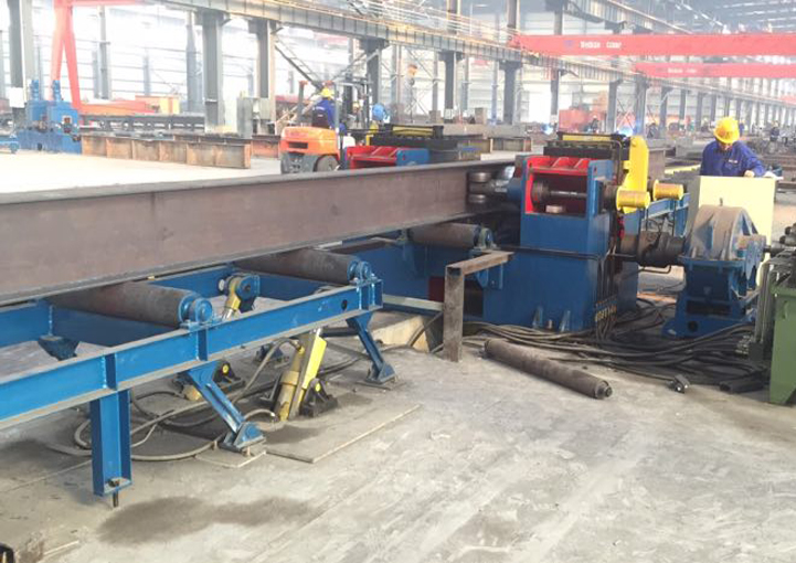 用于矯正焊接H型鋼的變形。有機(jī)械、液壓矯正二大類。機(jī)械矯正結(jié)構(gòu)簡單,操作方便可靠適合輕鋼。液壓矯正矯正能力大,自動化程度高,適合重鋼。矯正輪與主動輥采用好質(zhì)量合金鋼,熱處理加工而成,經(jīng)久耐用。